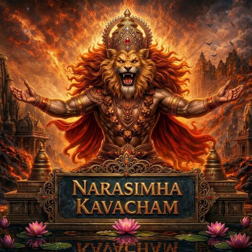 Listen to Narshima kavacham online. Narshima kavacham is a Sanskrit language song and is sung by Vamsee. Narshima kavacham, from the album Narshima kavacham, was released in the year 2026. The duration of the song is 5:24. Download Sanskrit songs online from JioSaavn.